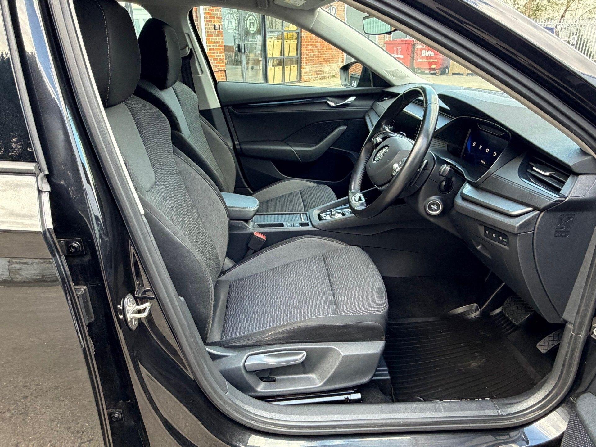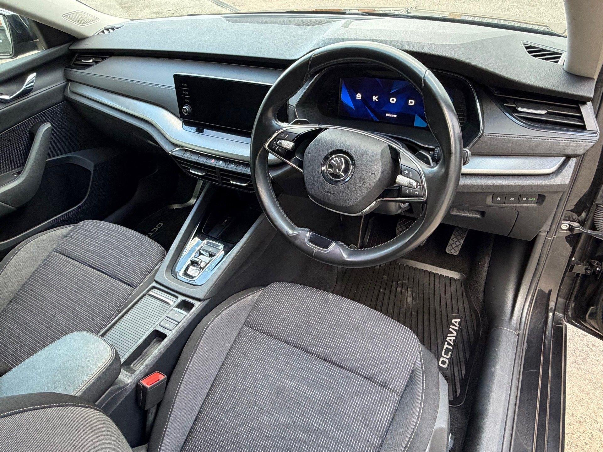 New 12 Months MOT: ULEZ Compliant, Comprehensive Warranty Cover Incl. Nationwide Delivery Options Available, Incl. Home & Office Delivery, We Are Proud To Offer This Truly Stunning New Shape Skoda Octavia TSI e-TEC SE MHEV Hybrid First Edition Saloon Automatic, Registered April 2021/21, Only Two Owners From New, Recent Keeper Since 2022, Presented In Black Magic Pearl Effect Metallic With Black Cloth Interior. This Vehicle Comes With Service History, Main Dealer & Independent, Last Serviced At 93k, 2 key Fobs, Leather Folder, All The Manuals & Digital Service Record, MOT Exp: 24/04/2027. Great Spec: SE Pack Incl. Aerodynamics, Chrome Grill Surround, Black Window Surround, 16" Velorum Alloys, DCC Dynamic Chassis Control Mode: Eco, Normal, Sport & Individual, Keyless Entry, Auto Start/Stop, LED Headlights With LED DRL Daytime Running Lights, LED Rear Lights, Multi Functional Leather Steering Wheel With Paddle Shift, Leather Gear Knob, Leather Handbrake Leaver, Cruise Control With Speed Limiter, Virtual Cockpit With 10.25" Display, Auto Dimming Rear View Mirror, Rear View Parking Colour Camera Park Assist Rear Parking Sensors, Auto Lights, Auto Wipers, Swing Radio 8.25" Touchscreen Colour Sat-Nav WI-FI/SmartLink/SmartGate, Apple Car-Play/Android-Auto, Bluetooth/Music/Streaming, DAB/Radio/Media/USB/SD/iPod/Aux, Voice Control, Premium Surround Sound System, Full Black Cloth Interior With Aluminium Trim, Lumber Support, Front Arm Rest, Dual Climate Control, Full Electric Windows, Electric Heated Door Mirrors, Ambient Interior Lighting, Cup Holders, Tyre Monitoring System, Front Fogs, Airbags, Mats, Isofix.